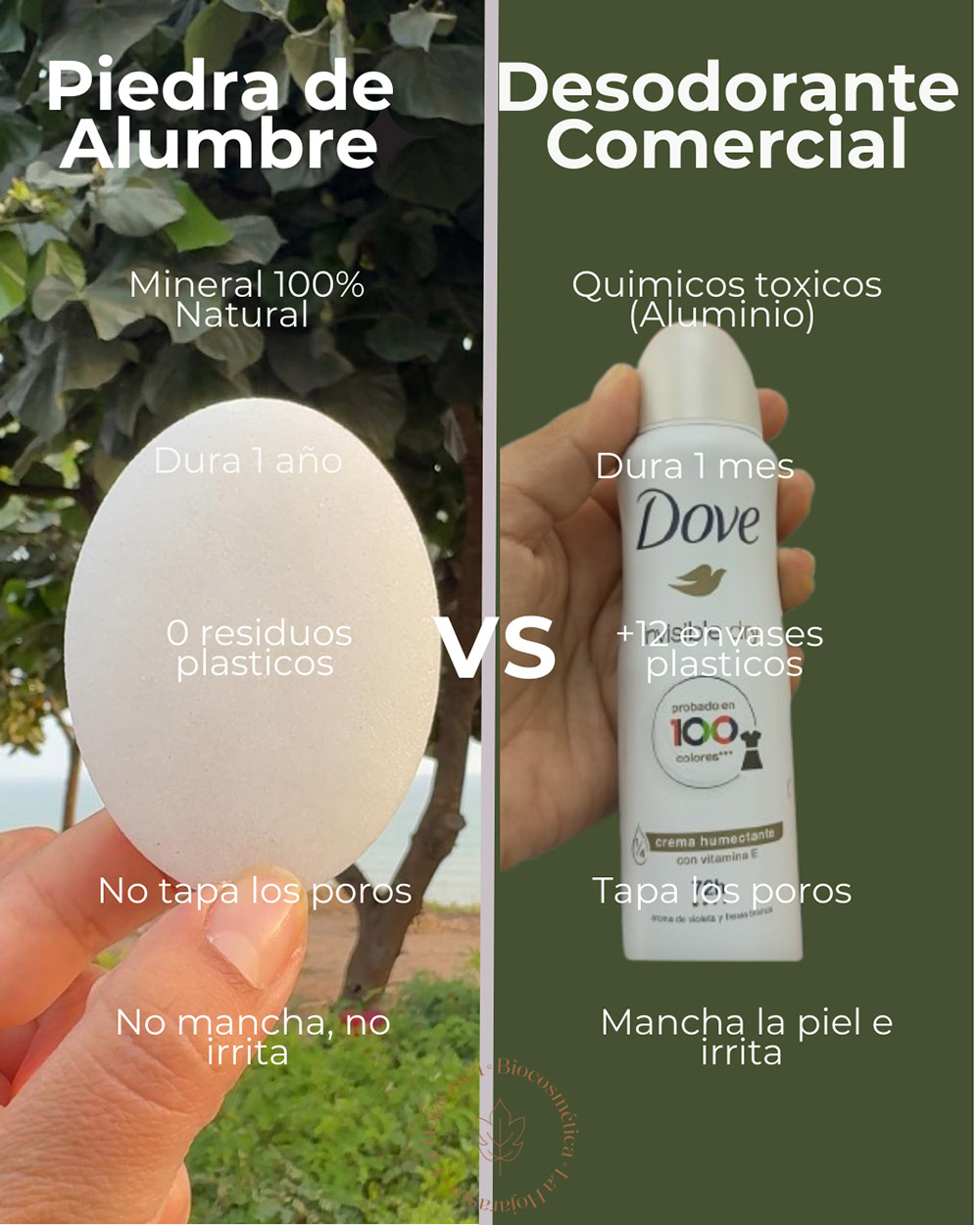 Este desodorante utiliza alumbre de potasio de origen natural, un mineral tradicionalmente utilizado como desodorante natural.